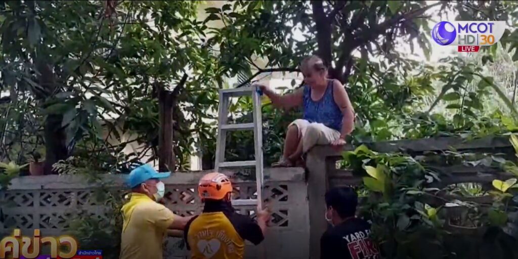 เชียงใหม่ 5 มิ.ย. – กิ่งต้นประดู่ยักษ์หักขวางถนนและทับประตูบ้านยายวัย 75 ปี ยายเจ้าของบ้านต้องปีนกำแพงรั้วบ้านสูงกว่า 2 เมตร ออกมาปลอดภัย