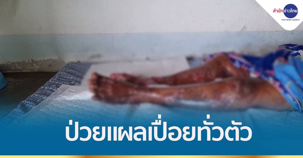 พี่สาวที่คอยช่วยดูแลตลอดเวลาเล่าว่า น้องสาวป่วยติดเตียงนานถึง 12 ปี จากโรคอัมพฤกษ์ซีกขวา เมื่อประมาณ 1 เดือนเศษเป็นโรคประหลาดขึ้นมา มีตุ่มพุพอง บวมน้ำตามผิวหนังทั่วร่างกาย ก่อนจะแตกเป็นแผลเปื่อย ปวดแสบปวดร้อน ไปหาหมอถึง 2 โรงพยาบาล อาการก็ไม่ดีขึ้น หมอบอกเป็นผิวหนังอักเสบ ไม่เคยพบแบบนี้มาก่อน ถือเป็นกรณีแรกของจังหวัดนครศรีธรรมราช จึงพากลับบ้าน ดูแลเท่าที่จะทำได้แผลลุกลามเปื่อยไปเรื่อยๆ ไม่มีท่าทีว่าจะหาย ส่วนตัวก็จนใจไม่รู้จะช่วยเหลือน้องสาวอย่างไร เพราะสภาพความเป็นอยู่ก็ลำบาก อาศัยแค่เบี้ยคนพิการของน้องสาว 800 บาท และเบี้ยผู้สูงอายุที่ได้เพิ่มเป็น 1,000 บาท รวมของตัวเองอีก 700 บาท ยังชีพไปเดือนต่อเนื่อง ไม่สามารถไปทำงานได้ เนื่องจากต้องดูแลน้องสาวตลอดเวลา มีเพื่อนบ้านคอยช่วยเหลือ บ้านที่อยู่ก็เป็นของผู้ใจบุญให้อยุ่อาศัย อยากให้น้องหายจากความทรมาน ยินดีที่จะให้แพทย์นำไปเป็นกรณีศึกษาวิจัยอาการที่เกิดขึ้น เพื่อหาวิธีการหรือตัวยาที่จะรักษาให้หายได้ เพราะตอนนี้ได้แค่รักษาตามอาการ แต่ยังไม่สามารถวินิจฉัยสาเหตุและอาการได้. – สำนักข่าวไทย