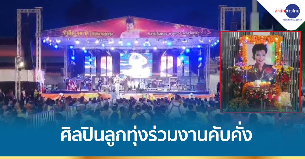 สุพรรณบุรี 14 มิ.ย. – งานรำลึกครบรอบ 30 ปี การจากไปของราชินีลูกทุ่ง “พุ่มพวง ดวงจันทร์” ที่วัดทับกระดาน จ.สุพรรณบุรี เมื่อคืนนี้ มีบรรดาศิลปินเพลงลูกทุ่งแห่ร่วมงานรำลึกกันอย่างคับคั่งนับร้อยชีวิต งานจัดขึ้น 9 วัน 9 คืน ไปจนถึง 18 มิถุนายน
