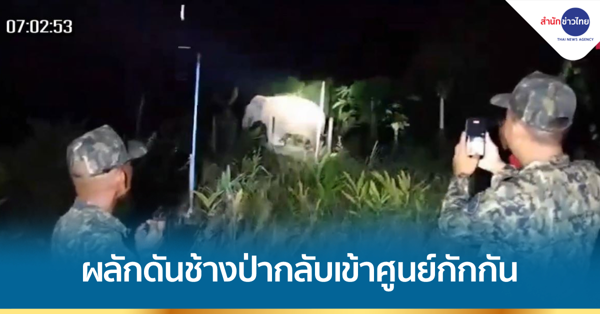 สระแก้ว 15 มิ.ย. -เจ้าหน้าที่ชุดผลักดันช้างป่าเขตรักษาพันธุ์สัตว์ป่าเขาอ่างฤาไน ผลักดันช้างป่าสีดอแก้ว หนีสถานกักกันช้าง จ.สระแก้ว บุกบ้านและทำลายพื้นที่การเกษตรของชาวบ้านเสียหาย กลับเข้าศูนย์กักกันได้อย่างปลอดภัยแล้ว