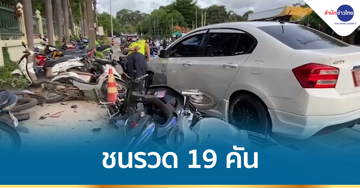 ระยอง 15 มิ.ย. – หนุ่มขับรถเก๋งวูบหลับ พุ่งชน จยย. จอดริมทาง เสียหาย 19 คัน มีผู้บาดเจ็บ 2 คน