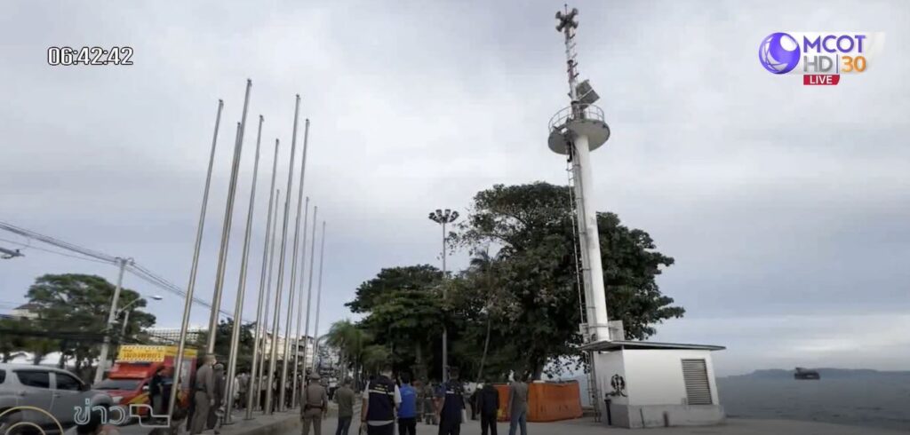 พ.ต.อ.กุลชาต กุลชัย ผกก.สภ.เมืองพัทยา จ.ชลบุรี ได้รับแจ้งมีชาวต่างชาติปืนหอคอยเตือนภัยสึนามิ ริมหาดจอมเทียน พัทยา ตรงข้ามตลาดไนท์มาเก็ตจอมเทียน ต.หนองปรือ อ.บางละมุง จ.ชลบุรี หลังรับแจ้งเหตุจึงประสานตำรวจตรวจคนเข้าเมือง ตำรวจท่องเที่ยว เจ้าหน้าที่กิจการพิเศษ เจ้าหน้าที่กู้ภัยสว่างบริบูรณ์ธรรมสถานเมืองพัทยา รุดไปตรวจสอบ