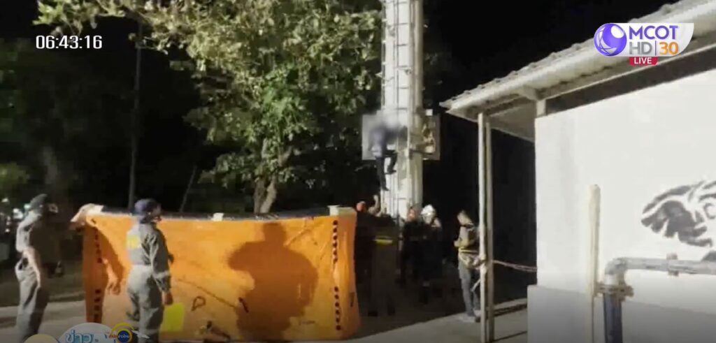 ที่เกิดเหตุพบชายชาวจีน อายุ 51 ปี ปีนขึ้นไปอยู่บนหอคอยเตือนภัยสึนามิ สูงประมาณ 20 เมตร เจ้าหน้าที่พยายามเกลี้ยกล่อม พร้อมกางเบาะลม ส่งล่ามแปลภาษาเจรจา ใช้เวลานานกว่า 3 ชั่วโมง ก็ไม่เป็นผล กระทั่งเจ้าหน้าที่ต้องส่งล่ามแปลภาษาปีนขึ้นไปเจรจาพูดคุยบนหอเตือนภัยสึนามิ หลังจากนั้นไม่นานชายชาวจีนจึงค่อยๆ ปีนลงมาด้านล่างอย่างปลอดภัย