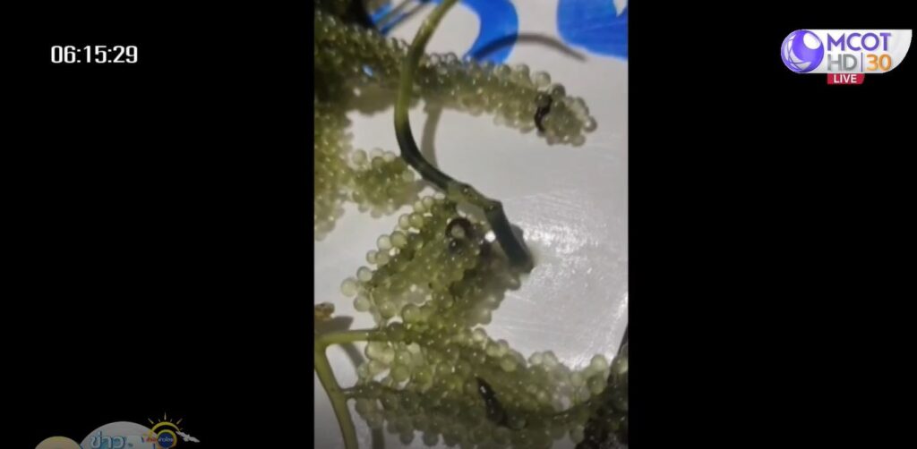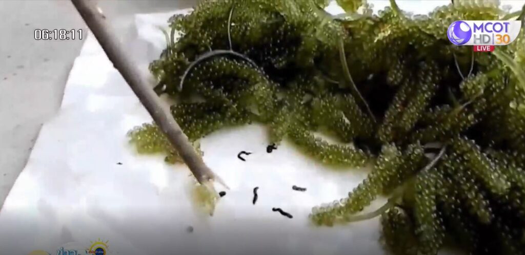 ปลิงตัวสีดำขนาดเล็กเกาะตามสาหร่ายทะเล ทำเอานางสาวปริยากร อายุ 48 ปี ที่ตั้งใจซื้อมารับประทาน ถึงกับเซ็ง บอกรู้สึกผิดหวัง โดยซื้อมาจากตลาดแห่งหนึ่งใน ต.ทุ่งไทรทอง อ.ลำทับ จ.กระบี่