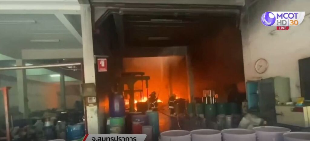 สมุทรปราการ 18 มิ.ย. – ไฟไหม้โรงงานผสมสีย่านบางพลี จ.สมุทรปราการ นักดับเพลิงและพนักงานโรงงาน บาดเจ็บรวม 4 ราย ทั้งหมดถูกนำตัวส่งโรงพยาบาลใกล้เคียง ล่าสุดอาการปลอดภัย