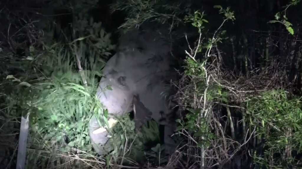 นครราชสีมา 23 มิ.ย. – “เจ้างาบิ่น” ช้างป่าเขาใหญ่ อายุ 25 ปี ออกป่ากลางดึก บุกกินกล้วยและข้าวโพดของชาวบ้าน อ.วังน้ำเขียว จ.นครราชสีมา ไม่สนเสียงไล่ ยืนกินจนพอใจจึงกลับเข้าป่าไป