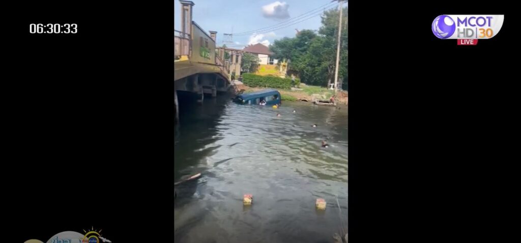 ปทุมธานี 30 มิ.ย. – ระทึก! รถตู้รับ-ส่งนักเรียนเสียหลักพุ่งตกคลอง นักเรียน 12 ชีวิต ตกใจกรีดร้อง พลเมืองดีโดดลงไปช่วยออกจากรถได้อย่างปลอดภัย บาดเจ็บเล็กน้อย คนขับอ้างวูบ ยืนยันไม่ได้หลับใน
