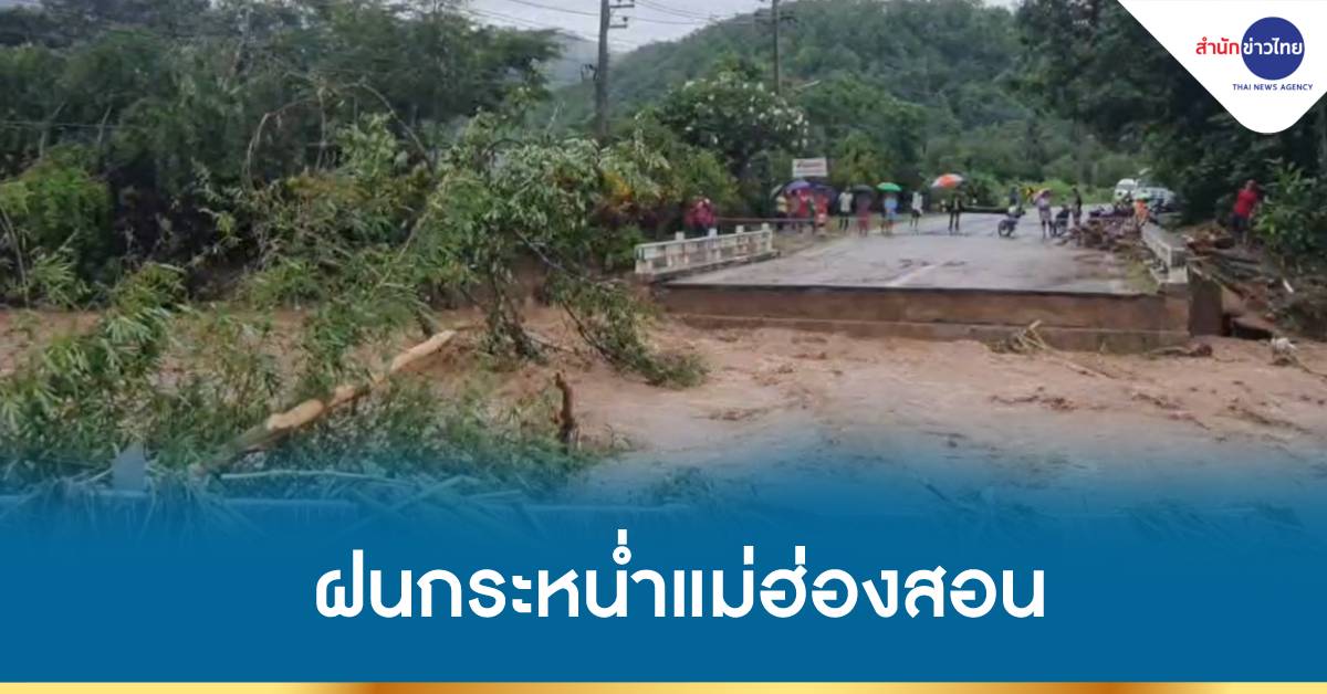 แม่ฮ่องสอน 1 ก.ค.-ฝนกระหน่ำแม่ฮ่องสอน สะสมกว่า 100 มิลลิเมตร น้ำป่าหลากพัดสะพานขาด ตัดขาดตัวเมืองแม่ฮ่องสอน กับ อ.ขุนยวม รถทุกชนิดไม่สามารถผ่านได้ และน้ำหลากไหลท่วมบ้านอีกเกือบสิบหลัง พร้อมเตือนเฝ้าระวังฝนตกหนักต่อเนื่อง