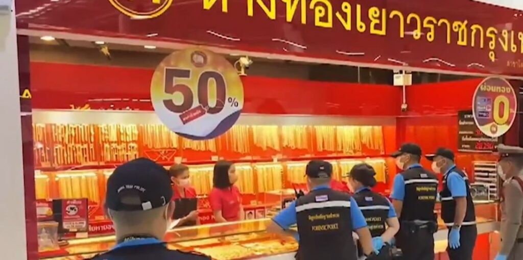กล้องวงจรปิดจับภาพวินาทีที่โจรบุกเดี่ยวควงปืนจี้พนักงานร้านทองเยาวราช ภายในห้างสรรพสินค้าย่านคลอง 7 จ.ปทุมธานี อย่างไม่เกรงกลัวผู้คนที่เดินผ่านไปมา ระหว่างที่บังคับให้พนักงานในร้านหยิบทองจากตู้ออกมา ตัวคนร้ายยังได้จับตัวพนักงานชายของร้านทองไว้ตลอดเวลา แต่ไม่มีใครได้รับบาดเจ็บ