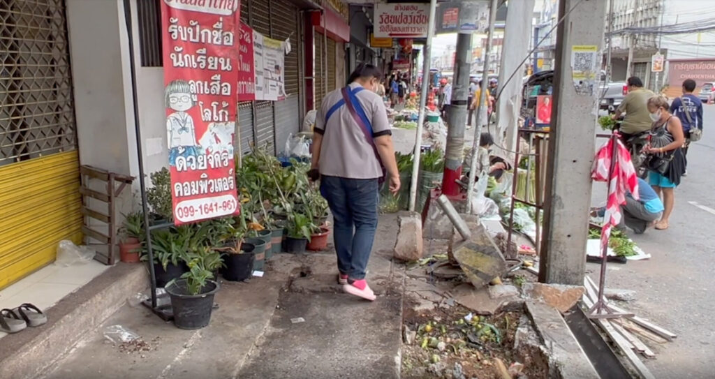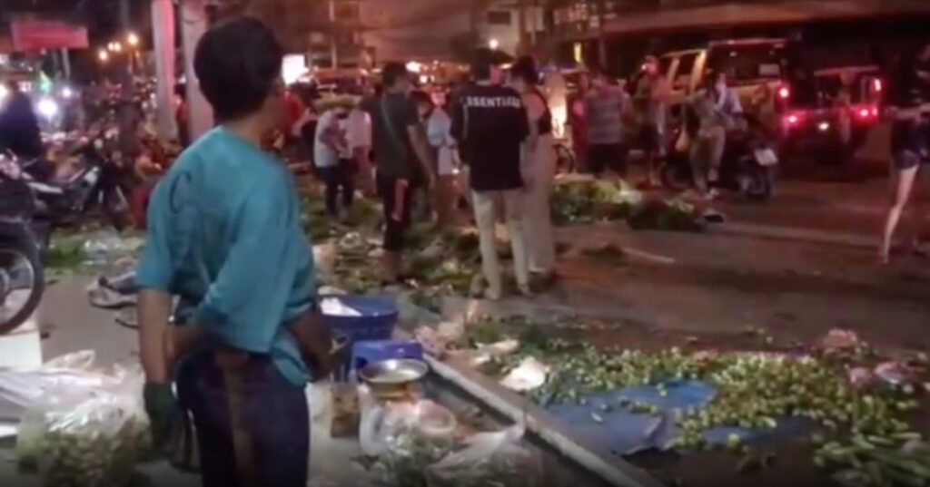 นี่เป็นภาพจากแม่ค้าที่นำของไปวางขายบนทางเท้าริมถนนหน้าเมือง ช่วงหลังตลาดสดบางลำพู เขตเทศบาลนครขอนแก่น ซึ่งบันทึกไว้หลังถูกรถเก๋งหรูขับพุ่งชนรถจักรยานยนต์และแม่ค้า มีผู้ได้รับบาดเจ็บ 4 ราย และข้าวของต่าง ๆ ได้รับความเสียหาย
