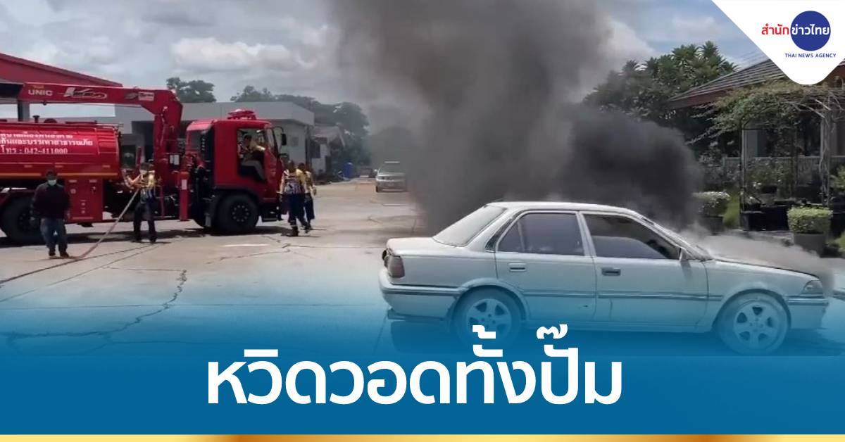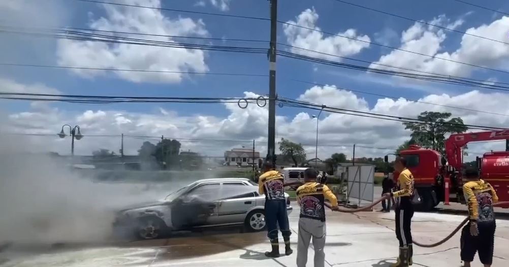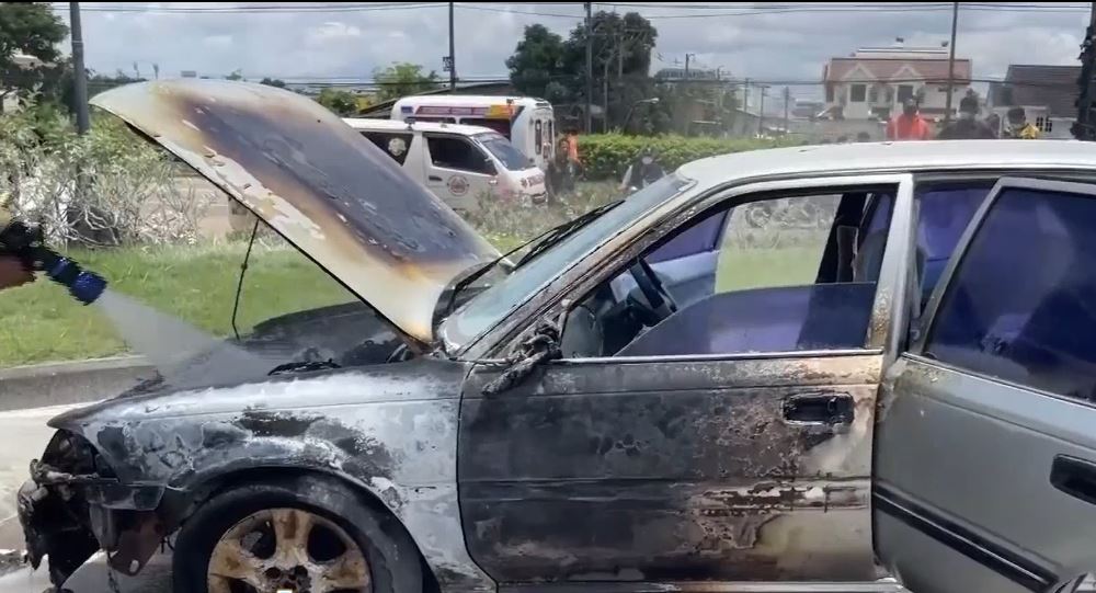 รถคันที่ไฟไหม้เป็นรถเก๋งรุ่นสุดเก๋า โตโยต้า โคโรล่า สีเงิน หมายเลขทะเบียนหนองคาย เจ้าหน้าที่ดับเพลิงใช้เวลาเพียง 10 นาที สามารถควบคุมเพลิงไว้ได้ สภาพด้านหน้าบริเวณห้องเครื่องฝากระโปรงหน้ารถ ถูกไฟไหม้เสียหาย