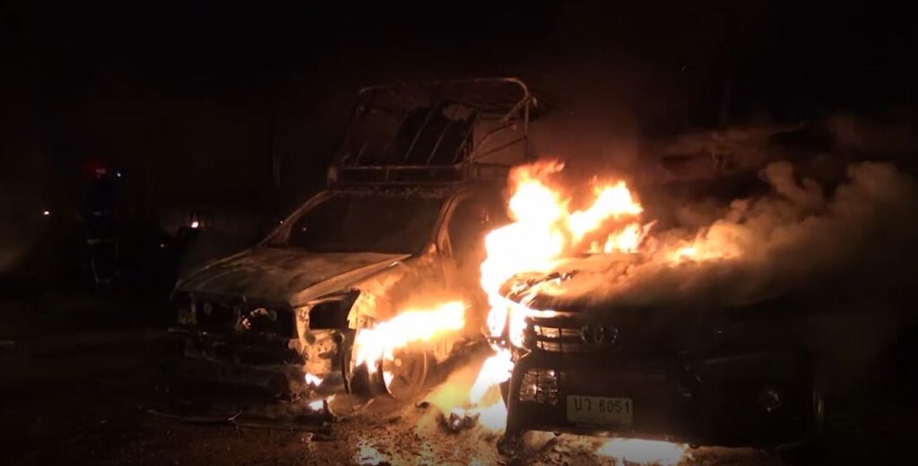 ตำรวจพิสูจน์หลักฐาน ตำรวจภูธรจังหวัดอุทัยธานี เข้าตรวจสอบที่เกิดเหตุเพลิงไหม้ร้านพิเชษฐ์ทำเบาะรถยนต์ ริมถนนสายทัพทัน-สว่างอารมณ์ ต.ทัพทัน อ.ทัพทัน จ.อุทัยธานี ซึ่งเป็นห้องแถวปูน 5 ห้อง หลังคาไม้ และภายในมีฟองน้ำสำหรับไว้ทำเบาะเป็นจำนวนมาก ไฟไหม้ลุกลามเสียหายทั้งหมด และมีผู้เสียชีวิตเนื่องจากติดในห้อง 3 ราย คือ นายพิเชษฐ์ นางขม ภรรยา และลูกสาว อายุ 5 ขวบ นอกจากนี้พบรถยนต์กระบะที่จอดไว้หน้าร้านถูกไฟไหม้วอด 2 คัน รถจักรยานยนต์ อุปกรณ์ทำเบาะ และข้าวของต่างๆ ถูกไฟไหม้วอดหมด เบื้องต้นความเสียหายไม่ต่ำกว่า 2 ล้านบาท