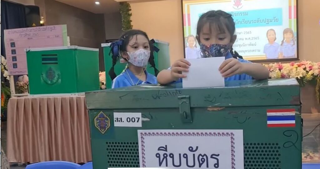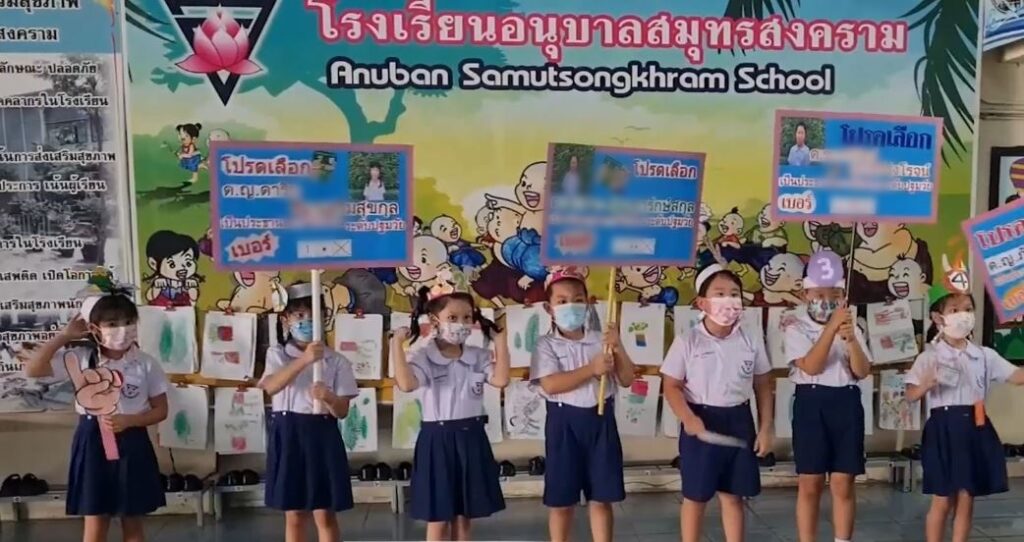 สำหรับผู้มีสิทธิลงสมัครเลือกตั้งเป็นนักเรียนระดับชั้นปฐมวัย โดยทั้ง 4 ห้อง จะมีการเลือกผู้แทน เพื่อนๆ ในห้องจะถือว่าเป็นผู้สนับสนุนหรือหัวคะแนนเพื่อช่วยกันหาเสียงก่อนวันเลือกตั้ง ในปีนี้ผู้สมัครแต่ละหมายเลขกำหนดนโยบายที่แตกต่างกัน โดยผู้ที่มีสิทธิลงคะแนนเสียงต้องมีอายุตั้งแต่ 3 ปีบริบูรณ์ขึ้นไป ในวันลงคะแนนเสียงเลือกตั้ง มีคูหาที่มีขนาดเหมาะสมกับผู้มีสิทธิออกเสียง มีการตรวจบัตรนักเรียน มีบัตรลงคะแนน มีหีบบัตร และมีการตรวจนับคะแนน ทุกขั้นตอนจะทำเหมือนจริงทั้งหมด.-สำนักข่าวไทย
