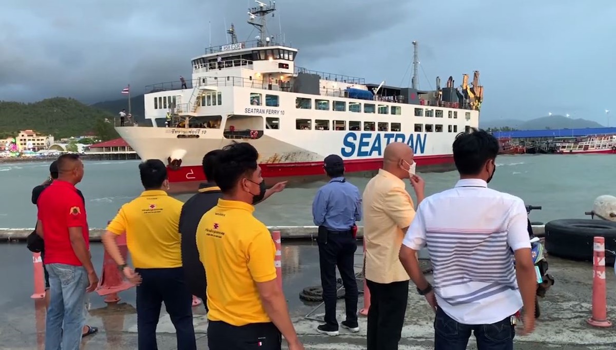 เรือเฟอร์รีขนาดใหญ่เกยตื้น บริเวณชายหาดบ้านหน้าทอน หมู่ที่ 3 ต.อ่างทอง อ.เกาะสมุย จ.สุราษฎร์ธานี มีผู้โดยสารอยู่บนเรือ จำนวน 118 คน และมีรถอีก 69 คัน