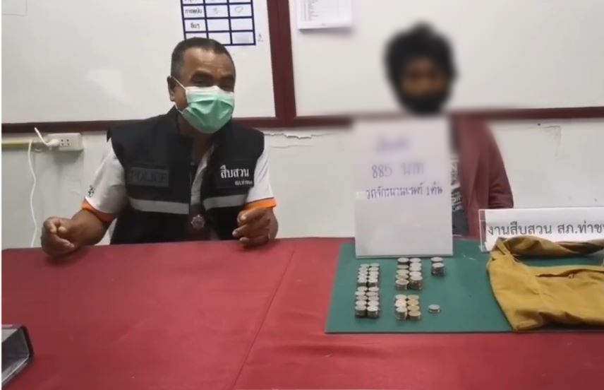 ตำรวจ สภ.ท่าชนะ จ.สุราษฎร์ธานี ได้รับแจ้งจากผู้ใหญ่บ้านว่า มีคนร้ายลักทรัพย์ภายในวัดศรีพนมพลาราม จึงรุดไปตรวจสอบ พอไปถึงที่เกิดเหตุ พบพระสงฆ์ สามเณร และชาวบ้าน กำลังล้อมตัวผู้ก่อเหตุที่อยู่ในอาการมึนเมา ทราบชื่อคือ นายธีระยุทธ หรือเอ็กซ์ อายุ 28ปี ชาวสุราษฎร์ธานี ที่นอนชิลรอให้ตำรวจมาจับ พร้อมของกลางที่ขโมยมา เป็นเงินเหรียญ 5 บาท, 10 บาท อยู่ในย่าม รวมๆ แล้วเกือบ 1,000 บาท และรถจักรยานยนต์ที่ใช้ก่อเหตุ ยี่ห้อซูซูกิ รุ่นสแมช สีเทาดำ ทะเบียนชุมพร