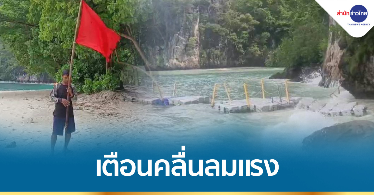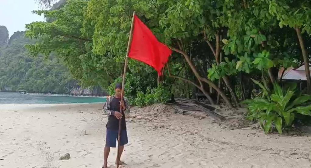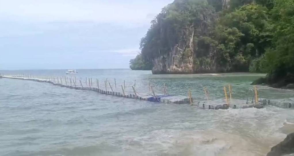 กระบี่ 6 ก.ค. – คลื่นลมแรง! ซัดสะพานทุ่นลอยน้ำเกาะห้องขาด เจ้าหน้าที่ขึ้นธงแดงเตือนนักท่องเที่ยวห้ามลงเล่นน้ำ