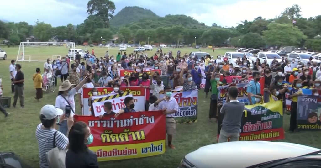 อุตสาหกรรมจังหวัดนครราชสีมา เชิญชาวบ้าน 4 หมู่บ้าน ต.หมูสี อ.ปากช่อง จ.นครราชสีมา รอบแนวเขตการขอประทานบัตรทำเหมืองแร่หินอ่อน ร่วมแสดงความคิดเห็นเพื่อทำประชาพิจารณ์ โดยก่อนถึงเวลาประชุม นายณัฐพัชร์ ทำสวน ผู้ใหญ่บ้าน หมู่ 12 บ้านท่าช้างใต้ พร้อมกำนัน ผู้ใหญ่บ้าน เทศบาลตำบลหมูสี รวมทั้งชาวบ้านและเยาวชนกว่าพันคน รวมตัวกันที่ลานวัดท่าช้างชูป้ายคัดค้านนายทุนยื่นคำขอประทานบัตรทำเหมืองแร่หินอ่อน ที่ขอจดทะเบียนไว้บนเนื้อที่กว่า 202 ไร่ บริเวณหมู่ 12 บ้านท่าช้างใต้ ซึ่งพบว่าพื้นที่ทั้งหมดเป็นภูเขาหินอ่อน มีป่าไม้อุดมสมบูรณ์ ทอดยาวไปหลายหมู่บ้าน อีกทั้งมีวัด โรงแรม รีสอร์ต สนามกีฬาระดับชาติ สนามกอล์ฟและแหล่งท่องเที่ยวอย่างอุทยานแห่งชาติเขาใหญ่