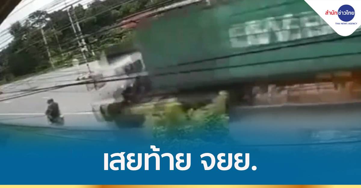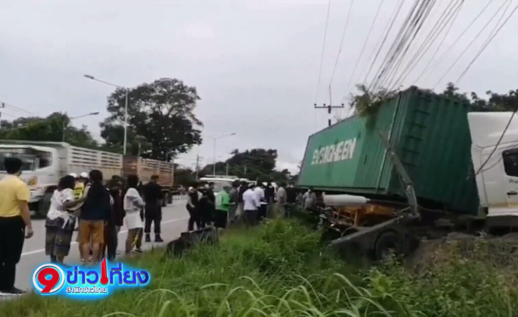 นครพนม 12 ก.ค. – วงจรปิดจับภาพรถพ่วงชน จยย. ทำให้นักศึกษาสัตวแพทย์เสียชีวิต ส่วนคนซ้อนเป็นนักศึกษาคณะพืชศาสตร์ บาดเจ็บ ขาหัก 2 ข้าง คาดคนขับรถบรรทุกหลับใน