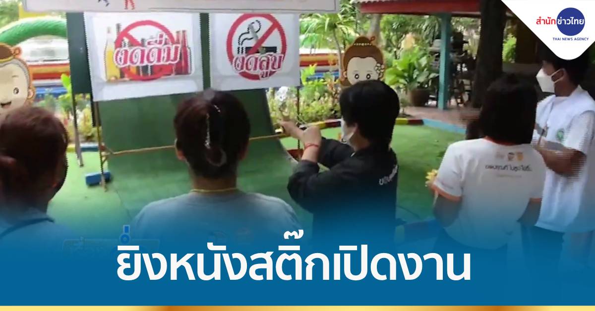 พาไปชมสีสันการเปิดงานโครงการประชาคมลดปัญหาเครื่องดื่มแอลกอฮอล์ และปัจจัยเสี่ยง ที่วัดโพธิ์เขียว อ.อู่ทอง จ.สุพรรณบุรี ไฮไลท์อยู่ที่การให้ประธานโครงการ นายธานินทร์ เพ็งอ้น ผู้ช่วยสาธารณสุข อ.อู่ทอง และ น.ส.อุบลวรรณ คงสว่าง ผู้ประสานงานเครือข่ายองค์กรงดเหล้าภาคตะวันตก ใช้หนังสติ๊กลูกกระสุนดิน ยิงใส่ป้ายกระดาษให้ขาด ซึ่งมีการวางแนวให้คนร่วมงานมายิงกระสุนใส่ป้าย แต่ปรากฏว่ายิงไม่ถูกเป้าสักที กระสุนต่ำไปบ้าง ไปไม่ถึงป้ายบ้าง ต้องลุ้นกันอยู่นาน กว่าจะโดนป้าย ต้องยิงกระสุนถึง 5 นัด โชคดีที่กระสุนไม่กระเด็นมาถูกท่านประธานหรือผู้ร่วมงาน
