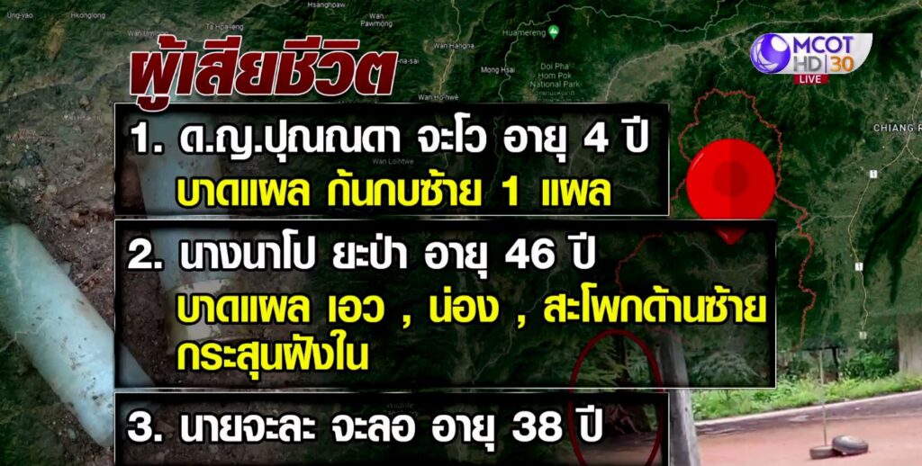 เชียงราย 14 ก.ค. – ตำรวจรวบหนุ่มคลั่งยาเสพติด ขโมยปืนลูกซองกราดยิงคนในหมู่บ้านป่าเกี๊ยะ อ.แม่สรวย จ.เชียงราย เสียชีวิต 3 ราย บาดเจ็บ 3 ราย หนึ่งในผู้เสียชีวิต เป็นเด็กวัย 4 ขวบ