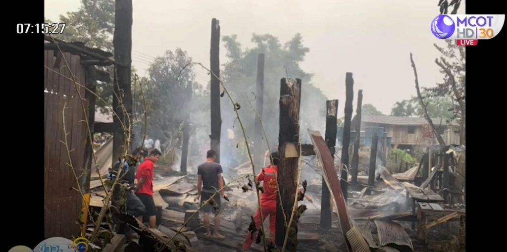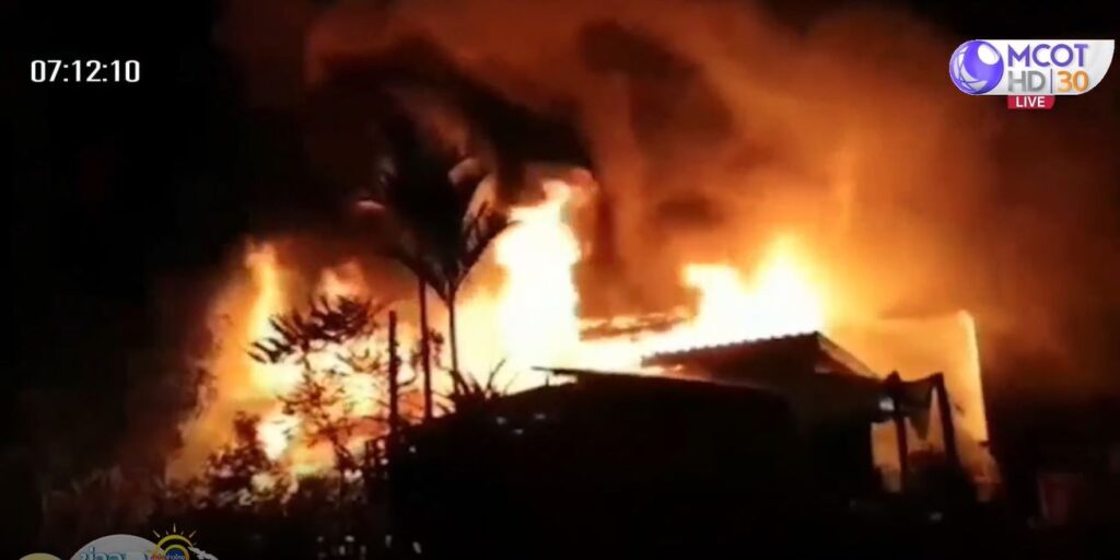 พบเพลิงกำลังโหมลุกไหม้บ้านไม้ 2 ชั้นอย่างรุนแรง มีชาวบ้านช่วยกันตักน้ำดับไฟ และเนื่องจากเส้นทางเข้าหมู่บ้านเป็นภูเขา รถดับเพลิงจึงต้องใช้เวลาเดินทางกว่าจะถึงหมู่บ้าน เจ้าหน้าที่ดับรีบระดมกำลังฉีดน้ำสกัดเพลิง ป้องกันเพลิงลุกลามไหม้บ้านใกล้เคียง ผ่านไปกว่า 1 ชั่วโมง จึงควบคุมเพลิงไว้ได้