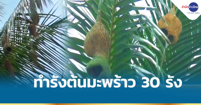 พะเยา 14 ก.ค..- นกกระจาบ ทำรังต้นมะพร้าว มากกว่า 30 รัง ต.บ้านต๋อม อ.เมือง จ.พะเยา พบเห็นได้ไม่มากนัก ส่วนใหญ่นิยมทำรังต้นไม้ชนิดอื่นมากกว่า เจ้าของบ้านบอกเคยเกิดเหตุการณ์อัศจรรย์วันพระใหญ่มักมีผู้พบเห็นลูกแก้วลอยส่องแสงสว่าง เชื่อต้นมะพร้าวให้โชคนำความร่มเย็นสู่ครอบครัว