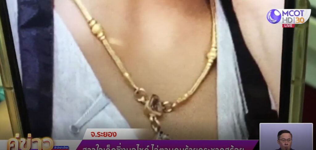 ระยอง 16 ก.ค. – สาวถูกกระชากสร้อยคอทองคำหนัก 2 บาท พร้อมพระเลี่ยมทอง ใจเด็ดซิ่งรถจักรยานยนต์ไล่ตามแบบไม่คิดชีวิต หวังเอาสร้อยคืน แต่ลูกชายวัย 4 ขวบ ตกใจร้องไห้จึงต้องรีบจอดรถ ทำให้คนร้ายหนีไปได้