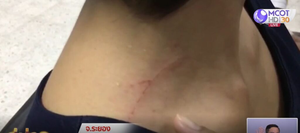 อย่างไรก็ดี ยังพบว่าบริเวณต้นคอของนางสาววัชรียาถูกเล็บคนร้ายข่วนเป็นรอยยาว หลังแจ้งความลงบันทึกประจำวัน เจ้าหน้าที่ตำรวจได้ให้นางสาววัชรียาพาไปชี้จุดเกิดเหตุ ก่อนจะตรวจสอบกล้องวงจรปิดหาเบาะแสคนร้ายมาดำเนินคดี.-สำนักข่าวไทย