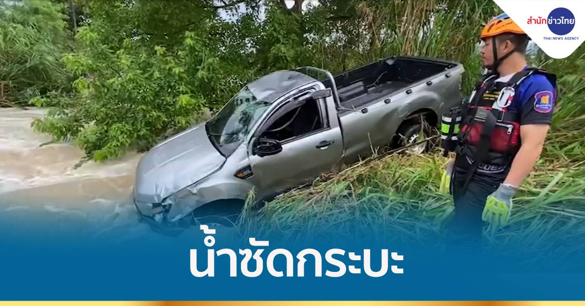 ชลบุรี 21 ก.ค. – รถกระบะถูกน้ำซัดเสียหลักพุ่งตกน้ำ คนขับรอดตายหวุดหวิด แต่คนงานเมียนมา 2 คน ที่ติดอยู่ในรถถูกน้ำพัดสูญหาย