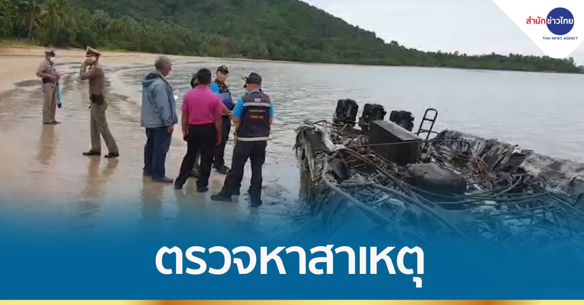 เบื้องต้นจากการสอบสวนกัปตันเรือและลูกเรือทราบว่า ช่วงที่เรือแล่นออกจากท่าเรือ ได้ใช้เครื่องยนต์ 2 เครื่องยนต์ และเมื่อเริ่มใช้เครื่องยนตร์เครื่องที่ 3 ก็เกิดการระเบิดขึ้น อย่างไรก็ตาม ช่วงบ่ายวันนี้ผู้เชี่ยวชาญด้านฟิสิกส์เคมีจากกองพิสูจน์หลักฐานจังหวัดสุราษฎร์ธานี จะได้เข้าเก็บหลักฐานเพิ่มเติม เพื่อระบุสาเหตุการเกิดอุบัติเหตุที่ชัดเจนอีกครั้ง เกิดจากเครื่องยนต์ขัดข้องหรือเกิดจากสายน้ำมันเรือรั่วและชำรุดตามที่หลายฝ่ายในการตั้งข้อสังเกต