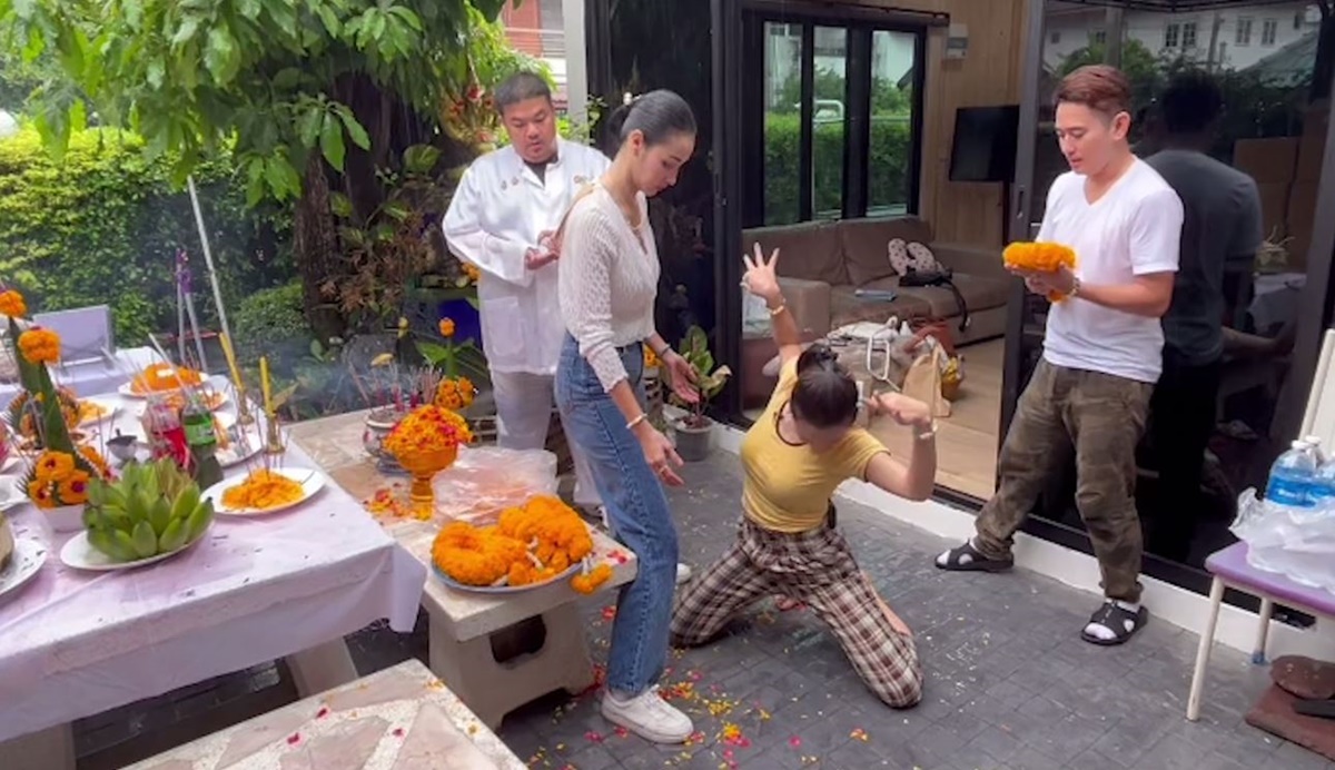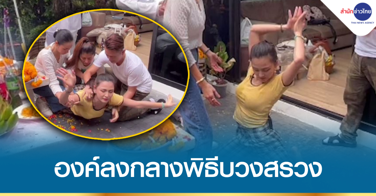 เมื่อวานนี้ (21 ก.ค.) “แคนดี้ รากแก่น” ได้ร่วมพิธีบวงสรวงในบ้านหลังหนึ่ง ท่ามกลางสายฝนที่โปรยปรายลงมา โดยมีอาจารย์มาประกอบพิธีให้ แต่จังหวะไหว้อยู่นั้น จู่ๆ “แคนดี้” เริ่มมีอาการตัวสั่นๆ และหลับตา ก่อนร่วงกองกับพื้น โดยมีดาราสาว “ษา” วรรณษา ทองวิเศษ ประคองตัวอยู่ใกล้ๆ จากนั้น “แคนดี้” ลงไปรำเลื้อยท่าทางคล้ายงูและพญานาค