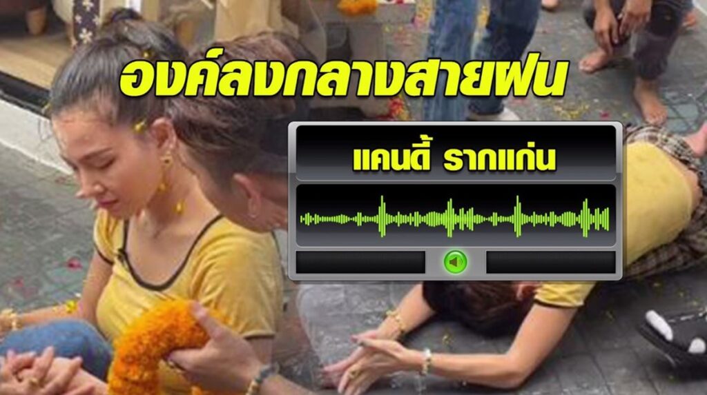 22 ก.ค. – “แคนดี้ รากแก่น” องค์ลงกลางสายฝน รำพญานาคระหว่างร่วมพิธีบวงสรวง บอกรู้สึกตัวตลอด แต่ไม่รู้ว่าทำอะไรออกไป