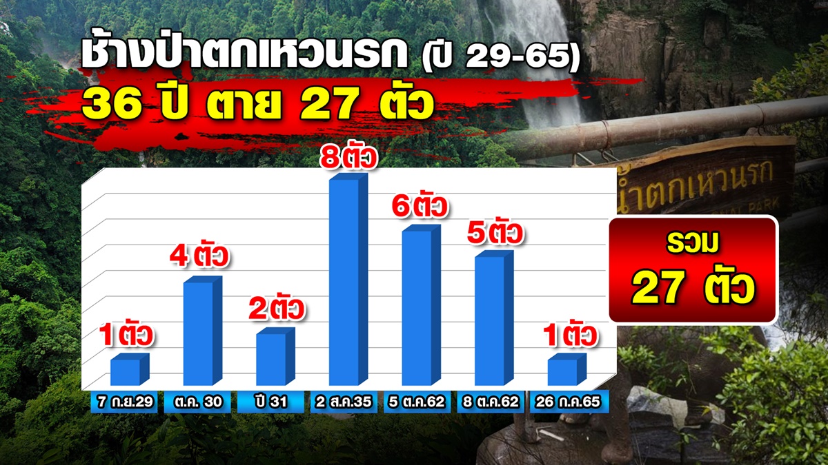 สำหรับช้างตัวนี้เป็นช้างไม่มีงา อายุประมาณ 10 ปี เป็นช้างรุ่น ตอนนี้ทางอุทยานฯ ได้ปิดน้ำตกเหวนรก ไม่อนุญาตให้เข้าไปในพื้นที่