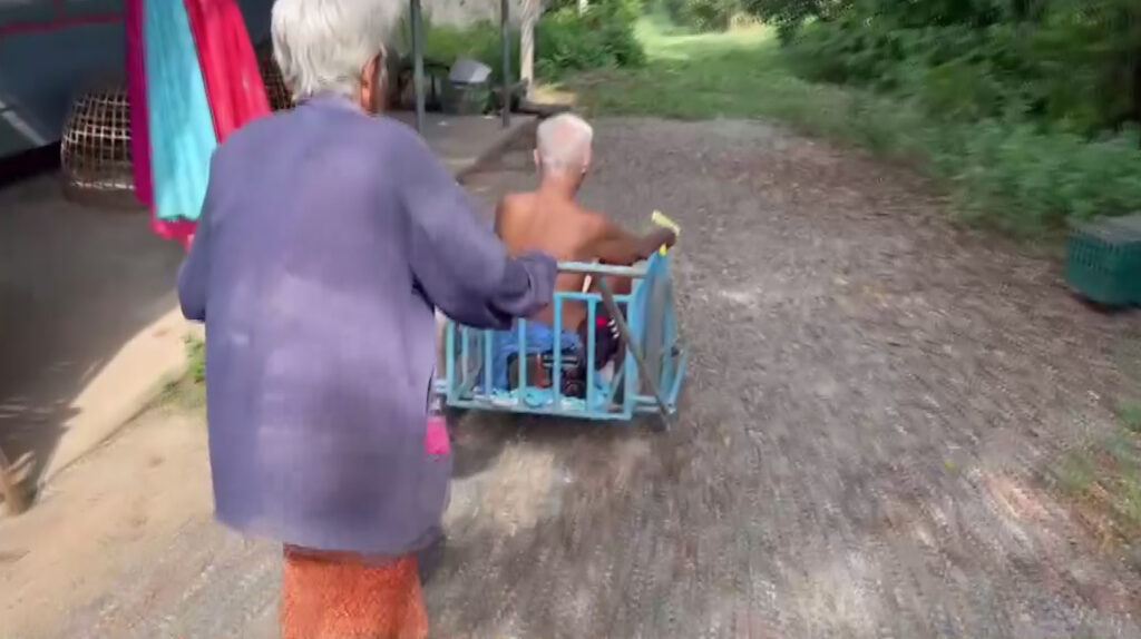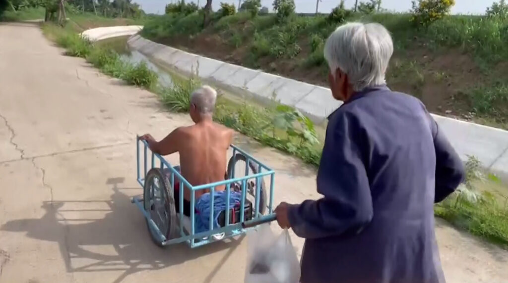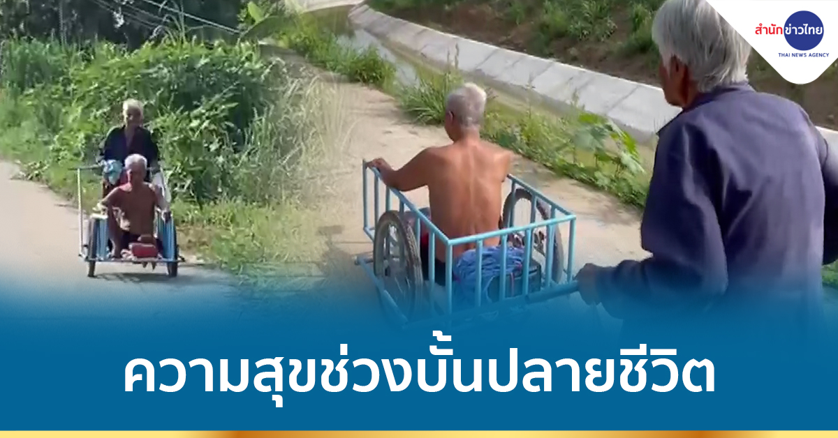 อ่างทอง 29 ก.ค.- คู่ชีวิต! ยายวัย 78 ปี เข็นรถกว่า 2 กิโลเมตร พาตาวัย 84 ปีพิการขาซ้าย ไปทำสวนกล้วยทุกวัน บอกอยากอยู่ด้วยกันตลอดเวลาที่มีชีวิตอยู่ ไม่อยากทิ้งให้อยู่บ้านคนเดียวเพียงลำพัง