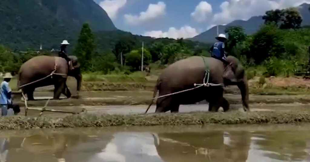 แม่จันทร์นวล และ พังแม่สองสี สวมสายอ้อมคอ เดินลากแอกไถนาอย่างคล่องแคล่ว บนผืนนาที่ตำบลบ้านถ้ำ อ.เชียงดาว จ.เชียงใหม่ เปิดหน้าดินเตรียมให้ชาวนาลงแขกปักดำต้นกล้าปลูกข้าว โดยมีดอยหลวงเชียงดาวอยู่เป็นฉากหลัง กลายเป็นภาพวิถีชีวิตที่สวยงามราวกับภาพวาดและทำให้นักท่องเที่ยวที่ผ่านไปเห็นต้องแวะชมและถ่ายภาพ ช้างทั้งสองเชือกที่มาช่วยชาวบ้านทำนาถือว่าเป็นช้างที่มีทักษะและประสบการณ์ในการไถนามาก่อน ทำให้การไถนาปรับหน้าดินดูเป็นเรื่องง่ายและใช้เวลาไม่นาน ต่างจากการใช้ควายหรือรถไถที่ใช้เวลามากกว่า