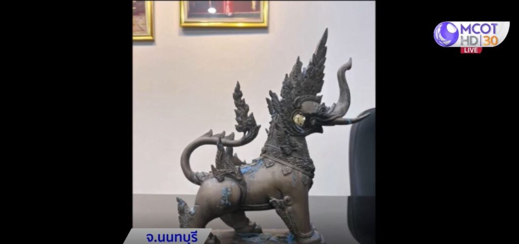 นนทบุรี 31 ก.ค. – ตำรวจคุมตัวหนุ่มขโมยพญาคชสีห์เสนีพิทักษ์ จากแท่นบูชาหน้าสถาบันเทคโนโลยีป้องกันประเทศ ทำแผนประกอบคำรับสารภาพ ระบุมูลเหตุทำไปเพราะความเชื่อส่วนบุคคล และเสพยามาก่อนก่อเหตุ