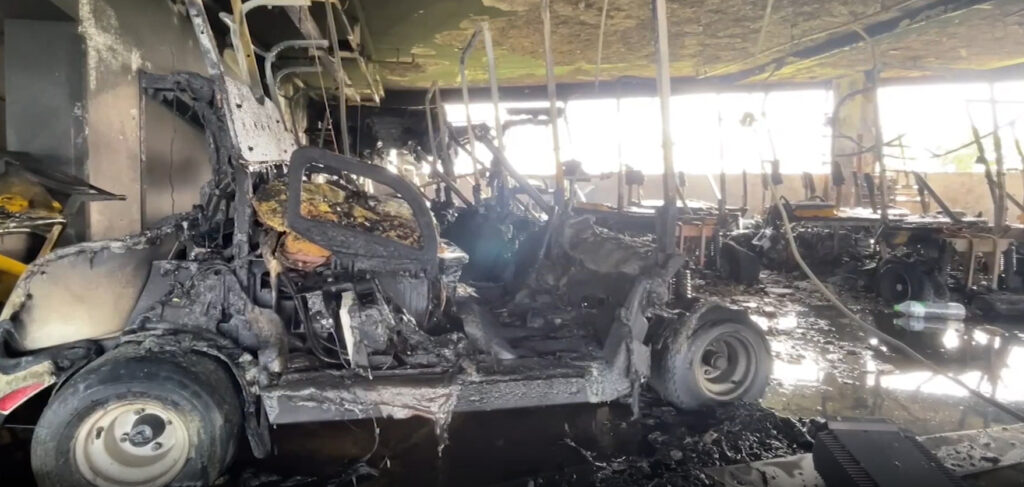 ที่เกิดเหตุเป็นอาคารสูง 4 ชั้น เพลิงลุกไหม้อย่างรุนแรง เจ้าหน้าที่ระดมรถดับเพลิงกว่า 10 คัน ใช้เวลากว่า 1 ชั่วโมง เพลิงจึงสงบ ตรวจสอบพบรถกอล์ฟเสียหายเกือบ 70 คัน