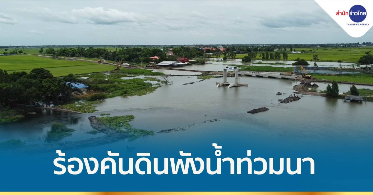 กำนัน ผู้ใหญ่บ้าน และชาวนารวมตัวกันกว่า 10 คน มาที่นาข้าว บ้านดอนยอ ม.5 ต.วังน้ำเย็น อ.บางปลาม้า จ.สุพรรณบุรี ซึ่งถูกน้ำท่วมเสียหายจากฝนที่ตกต่อเนื่อง และคันดินกั้นน้ำพัง น้ำไหลลงนาข้าวเสียหายกว่า 5,000 ไร่