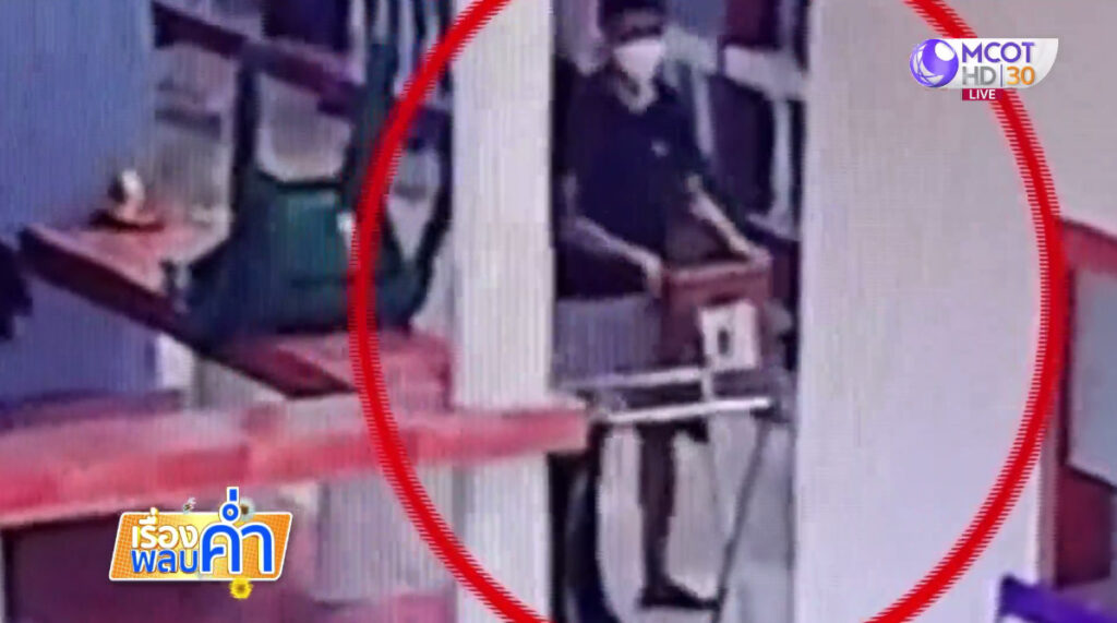 ภาพจากกล้องวงจรปิดจับภาพชัด ชายเสื้อดำทำทีด้อมๆ มองๆ เดินเข้าไปยกกล่องไม้ใต้ที่นั่งปูน แล้วรีบออกไป โดยพระปลัดสมหวัง ฉันทสีโล เจ้าอาวาสวัดมะสง ต.ทวีวัฒนา อ.ไทรน้อย จ.นนทบุรี แจ้งว่ามีคนร้ายขี่รถจักรยานยนต์เข้ามาทุบตู้บริจาค กวาดเงินไปเกลี้ยงแล้วหลบหนี