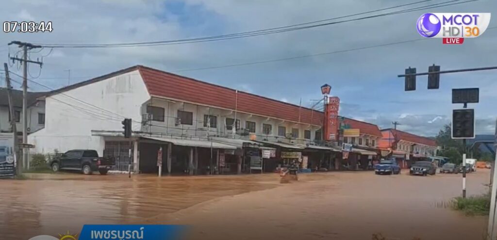 ส่วนที่เพชรบูรณ์ แม่น้ำป่าสักใน อ.หล่มสัก เริ่มเอ่อล้นตลิ่งไหลเข้าท่วม 3 ชุมชน ที่อยู่ในเขตเทศบาลเมืองหล่มสัก และทั้ง 11 หมู่บ้าน ในเขตเทศบาลตำบลตาลเดี่ยว เป็นระลอกที่ 2 แล้ว หลังเกิดฝนตกหนักติดต่อกันหลายวัน ประกอบกับน้ำป่าไหลเข้าท่วมหลายหมู่บ้านในพื้นที่ อ.หล่มเก่า และ อ.ด่านซ้าย จ.เลย ไหลบ่าลงมาสมทบกับน้ำในแม่น้ำป่าสักที่กำลังมีปริมาณสูง ส่งผลให้แม่น้ำป่าสักที่ อ.หล่มสัก เริ่มมีปริมาณเพิ่มสูงขึ้นอย่างรวดเร็ว