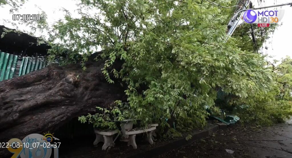 ที่จันทบุรี ต้นมะขามขนาดยักษ์ขนาด 3 คนโอบ อายุกว่า 200 ปี โค่นล้มขวางถนน แข้างตึกแดงฝรั่งเศส ถนนเลียบชายหาดแหลมสิงห์ ต.ปากน้ำแหลมสิงห์ อ.แหลมสิงห์ โชคดีที่ต้นมะขามไม่ล้มทับโบราณสถานตึกแดง บ้านเรือนใกล้เคียง และไม่มีใครได้รับบาดเจ็บ