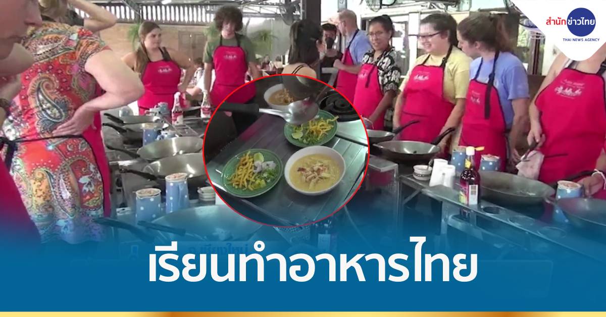 เชียงใหม่ 10 ส.ค. – นักท่องเที่ยวต่างชาติแห่เรียนทำอาหารไทยในโรงเรียนสอนที่เชียงใหม่คึกคัก ทั้งจ่ายตลาดและปรุงอาหารเอง 5 เมนู โดยเมนูยอดฮิต ข้าวซอย อาหารเมืองเหนือ น้ำซุปติดเทรนด์ระดับโลก จนทางโรงเรียนรับแทบไม่ไหว