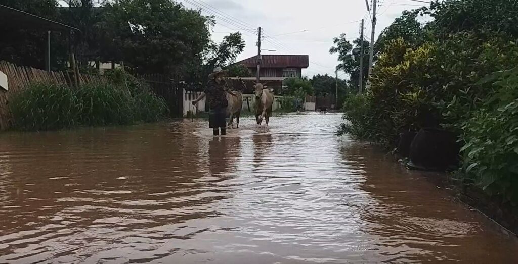 น่าน 12 ส.ค. – ผู้ใหญ่บ้านหมู่ 2 ต.ผาตอ อ.ท่าวังผา จ.น่าน เตือนลูกบ้านเร่งเก็บสิ่งของไว้ที่สูง ย้ายยานพาหนะ รวมถึงสัตว์เลี้ยง เป็นการเร่งด่วน เนื่องจากฝนตกหนักต่อเนื่องส่งผลให้น้ำป่าไหลลงสู่แม่น้ำล้นตลิ่งทะลักท่วมบ้านเรือน พื้นที่การเกษตร