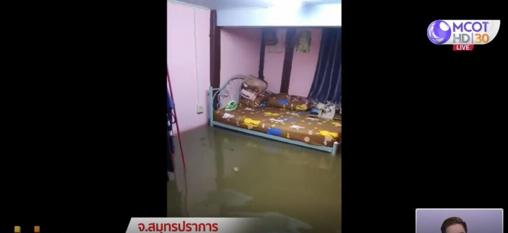 ชาวบ้านในชุมชนคลองค่อต่อ วัดศรีจันทร์ประดิษฐ์ อำเภอเมือง จังหวัดสมุทรปราการ หลายหลังถูกน้ำทะเลไหลเข้าท่วมบ้านเรือนได้รับความเสียหาย บางจุดน้ำท่วมสูงถึงระดับเอว ชาวบ้านบอกว่าอยู่ที่นี่มาหลายสิบปีไม่เคยเจอ ครั้งนี้ท่วมหนักสุด น้ำมาเร็ว เก็บของไม่ทัน สาเหตุที่น้ำทะลักเข้าท่วมเพราะประตูระบายน้ำพัง