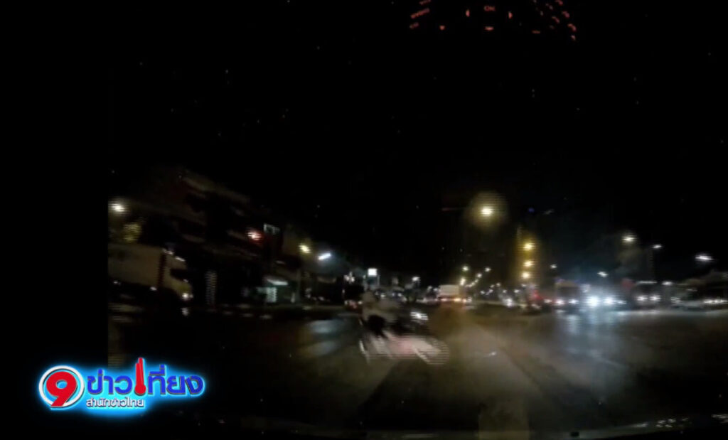 ภาพจากกล้องหน้ารถ เวลา 05.08 น. เช้าวันนี้ ขณะรถเก๋งสีขาว ทะเบียนชลบุรี มีนายเฉลิมพล อายุ 32 ปี เป็นคนขับมาตามถนนสิริโสธร ขาเข้าฉะเชิงเทรา พอมาถึงสี่แยกไฟแดงท่าสะอ้าน ถนนสิริโสธร ขาเข้าฉะเชิงเทรา หมู่ 6 ต.ท่าสะอ้าน อ.บางปะกง จ.ฉะเชิงเทรา เป็นช่วงไฟเขียวเปลี่ยนเป็นไฟเหลือง นายเฉลิมพลพยายามเร่งเครื่องจะให้พ้นไฟแดง แต่ก็ไม่พ้น จู่ๆ มีรถจักรยานยนต์ของนายปรีชา อายุ 49 ปี พร้อมคนซ้อน ขี่ฝ่าสัญญาณไฟแดงพุ่งออกมาจากฝั่งบางวัว จะเลี้ยวขึ้นถนนสิริโสธร ไปขาเข้าบางปะกง ทำให้ถูกชนเต็มแรง จนได้รับบาดเจ็บหมดสติ อาการสาหัส เจ้าหน้าที่ปฐมพยาบาลก่อนนำส่งโรงพยาบาลจุฬารัตน์ 11 ส่วนทางคดี ตำรวจรอสอบปากคำทั้งสองฝ่ายอย่างละเอียดอีกครั้ง . – สำนักข่าวไทย
