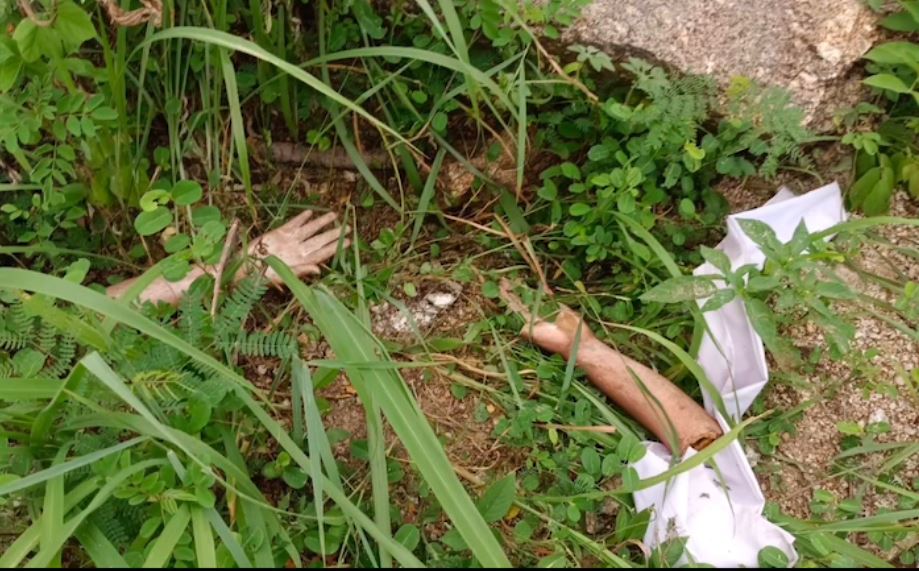 ระยอง 23 ก.ย.- ชาวบ้านผวานึกว่าเจอศพ หลังพบผู้ชายนุ่งขาวห่มขาวนอนแขนขาหลุดอยู่ข้างศาลเพียงตาที่ระยอง แจ้งตำรวจเข้าตรวจสอบ สุดท้ายพบเป็นแค่หุ่น
