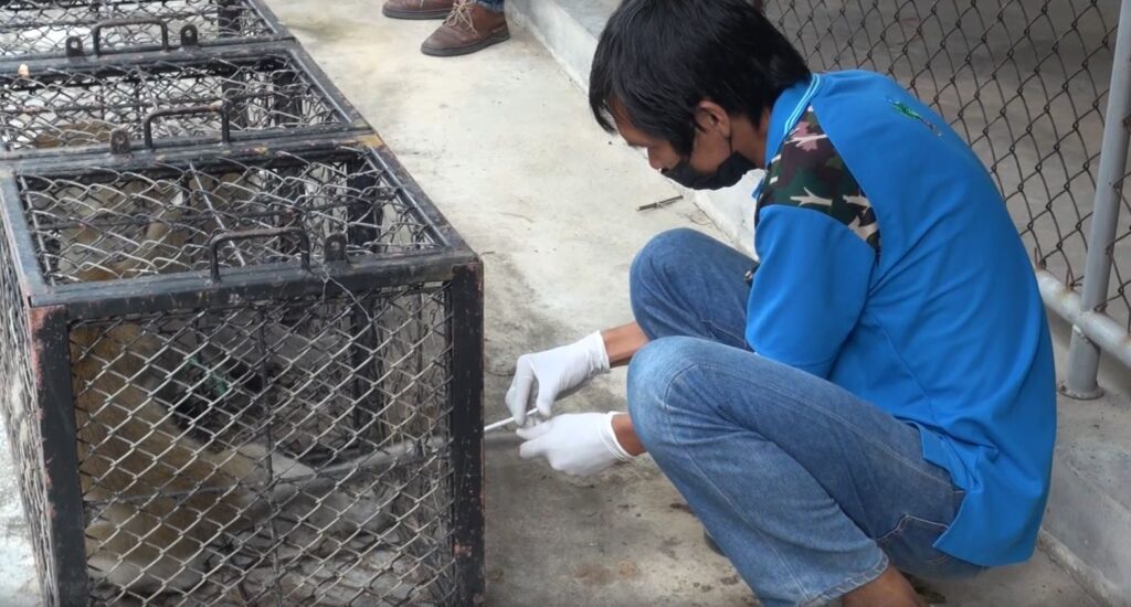 สงขลา 7 ก.ย. – อบต.เกาะยอ ร่วมกับสำนักบริหารพื้นที่ 6 ลงพื้นดักจับลิง เพื่อมาทำหมัน หลังก่อกวนบุกทำลายสวนผลไม้ของชาวบ้าน ขณะที่ชาวบ้านเองก็ยังต้องเฝ้าระวังสวนผลไม้ของตัวเองต่อเนื่อง เพราะแม้จะทำหมันแล้ว แต่ก็ยังคงปล่อยให้อยู่ในพื้นที่