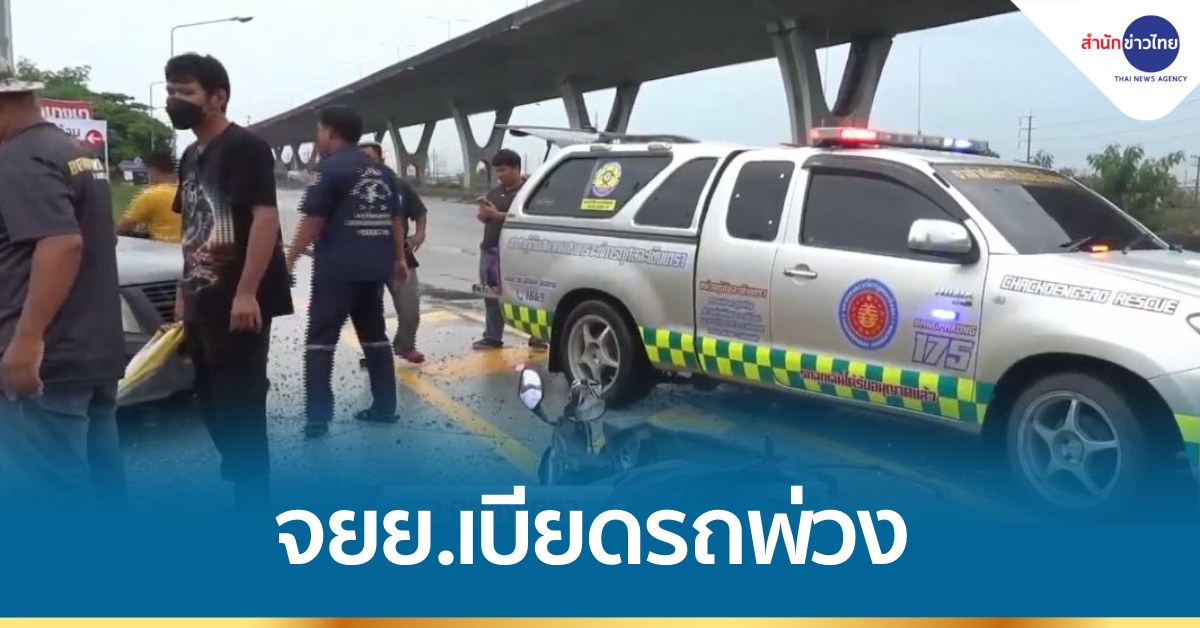 ฉะเชิงเทรา 9 ก.ย. – รถบรรทุกพ่วง 18 ล้อ เคลื่อนตัวรถออกจากสัญญาณไฟเขียวตามปกติ แต่รถจักรยานยนต์พยายามแทรกไปด้านหน้าระหว่างรถบรรทุกพ่วง 18 ล้อ และรถกระบะอีกคัน ส่งผลให้รถบรรทุกพ่วงเกี่ยวรถจักรยานยนต์ล้มคว่ำ ร่างลากทับศีรษะเสียชีวิตคาที่