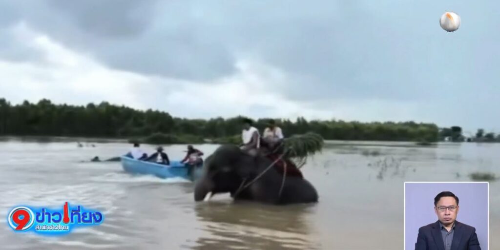 สุรินทร์ 9 ก.ย. – ลุ้นกันใจหายใจคว่ำ ช่วงเวลาช้างและควาญกำลังจมลงในน้ำใกล้มิดทั้งตัว ท่ามกลางกระแสน้ำที่ไหลเชี่ยว ชาวบ้านช่วยกันนำเรือผูกช่วยลากจูงช้างเข้าฝั่งได้อย่างปลอดภัย