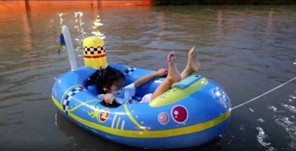 ระยอง 9 ก.ย. – “น้องแอนฟา” สาวน้อยวัย 4 ขวบ บอกมีความสุขมากกับน้ำท่วม เพราะทุกวันต้องให้คุณพ่อพาออกนั่งเรือยางลากจูงตระเวนดูน้ำท่วมบริเวณหน้าบ้านอย่างสบายใจ แถมออกอาการสนุกสนานและมีความสุขกับการนั่งเรือชมน้ำท่วมด้วย